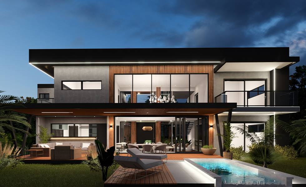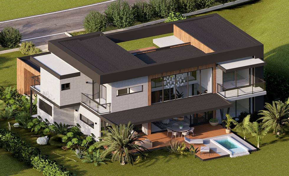 La casa cuenta con amplias áreas de circulación, parqueaderos privados y espacios de recreación.